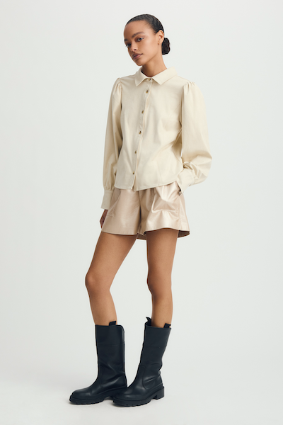 Chemisier tara crème en suède. Les manches sont ajustés aux poignets parfaits pour avoir un look plus western ou même décontracter.