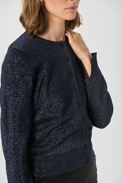 Cardigan marine à brillant. Parfait pour ajouté une touche chic à votre look. Facile à styler pour des occasion spéciale ou le temps des fête!