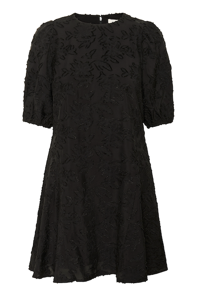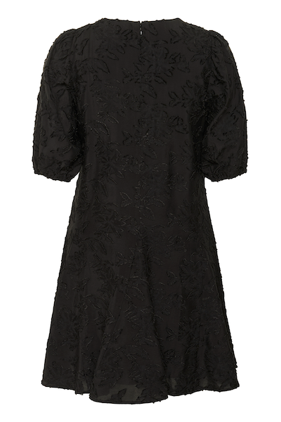 Robe noir à monche courte et encolure ronde. Imprimé noir de style florale, parfait pour avoir un look classe avec une touche de style plus discret.